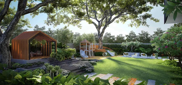 在难得的寸土寸金的市区核心区,开发商拿出了大片土地在一楼为住户预留了宽阔的花园休闲区和儿童游乐区,花园里还保留了两棵百年老树。这个才是最奢华最难能可贵的配套